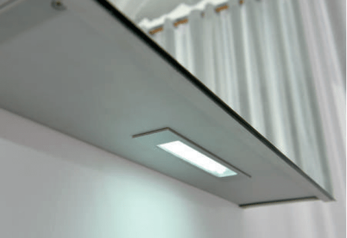 - Motion sensor switch swipe to turn light on/off, located at the bottom of the cabinet, controls the external lighting only