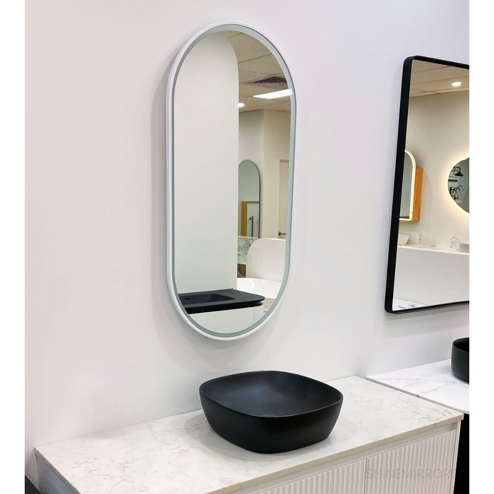Neo Matte White Pill LED Frontlit Bathroom Mirror