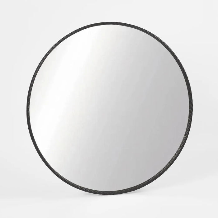 Unleash bold style with the Paula Large Black Round Wall Mirror. Embrace your inner risk-taker and add a touch of adventure to your decor with the elegant black rope twist design. Elevate your space and take on new challenges with this statement piece.