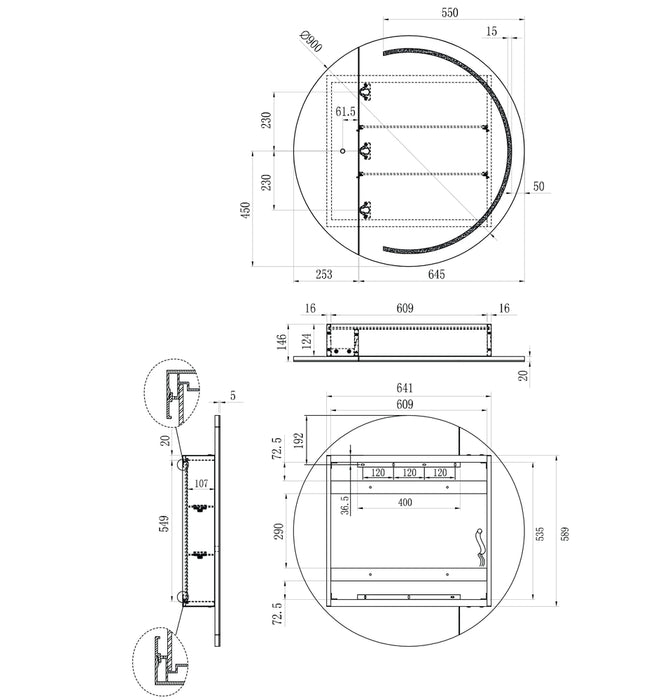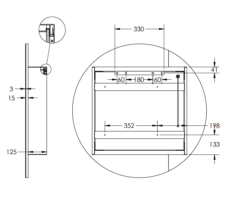 - Cabinet can be recessed, mirror door cannot be recessed.