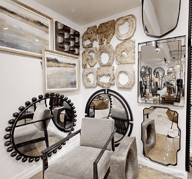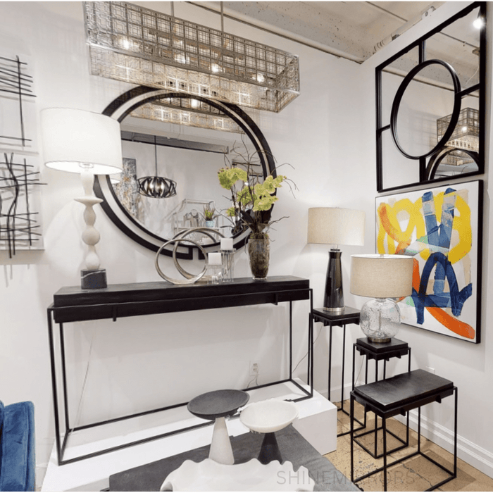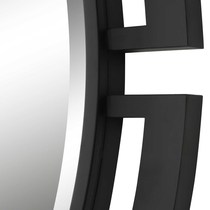 Featuring a thick 3-dimensional iron frame, this round mirror showcases a contemporary look. The uniquely styled frame has a sleek stain black finish and a generous 3cm bevel.