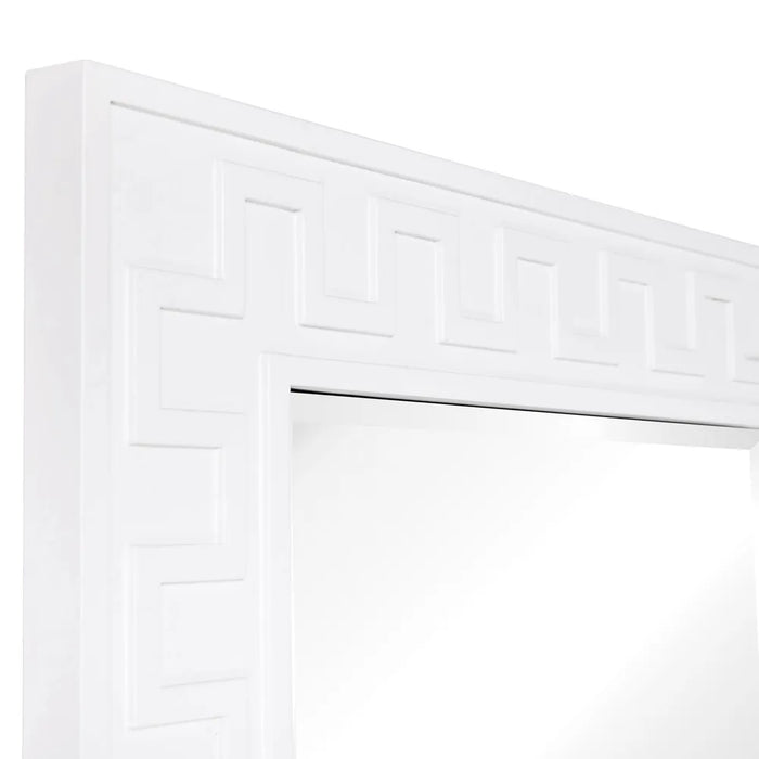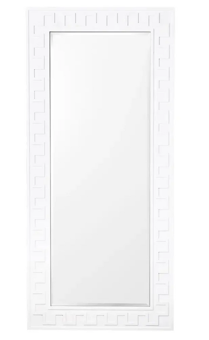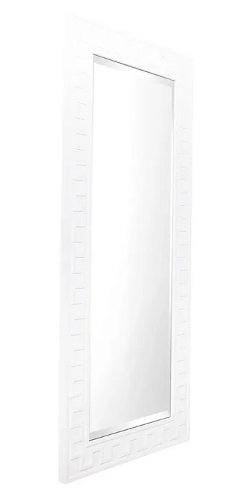 Enhance your space with our geometric style Rhoda White Rectangle Floor Mirror. The bevelled mirror edge surface adds dimension and style to any room while creating the illusion of increased light and space. Perfect for checking your outfit before heading out or adding a chic touch to your home decor.