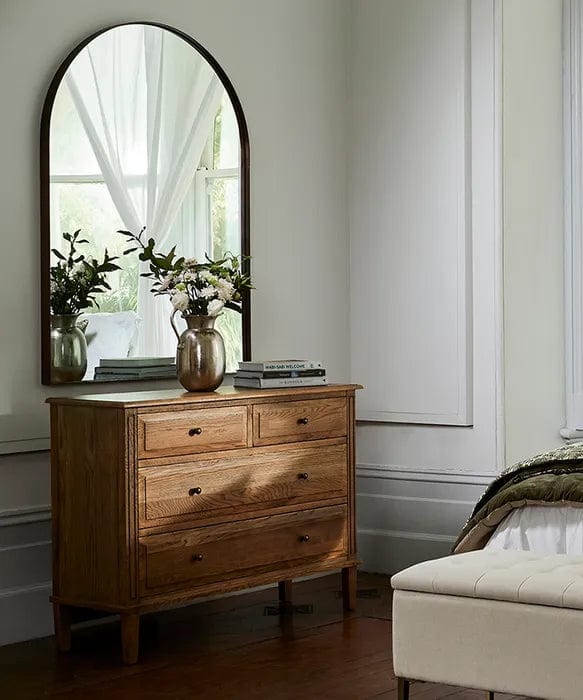 This stunning arch wall mirror is a sophisticated addition to the modern home. Constructed with strong iron and finished with a copper bronze hue, it adds a touch of elegance to any room. Perfect for making a statement without overpowering its surroundings.