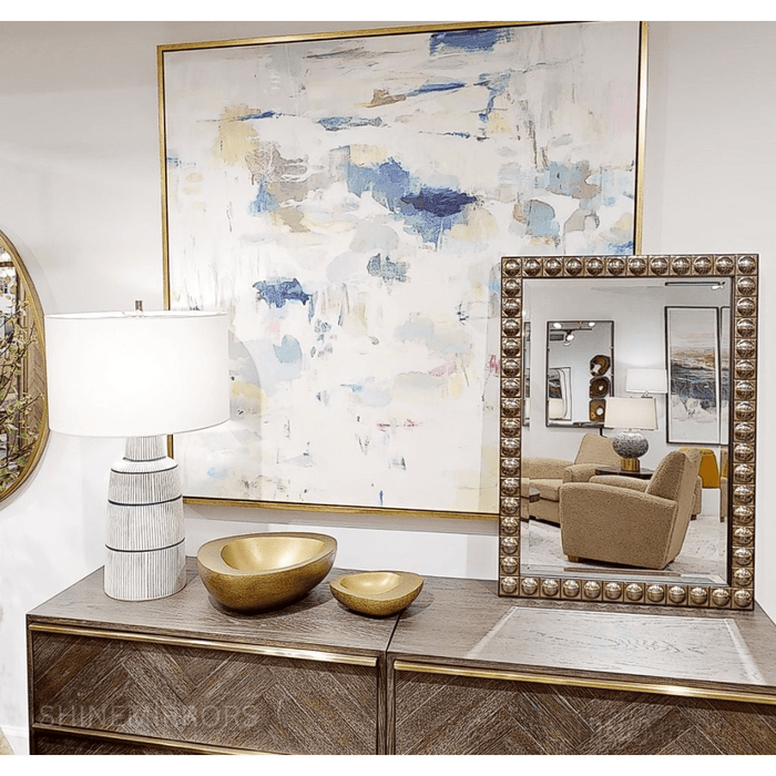 Enhance your vanity experience with the Silvio Vanity Mirror. The antiqued silver-champagne plating on repeated ceramic tiles with convexed centres adds a touch of elegance, while the black iron inner and outer frame adds durability. With a generous 3cm bevel, this mirror provides a clear reflection for flawless makeup application.