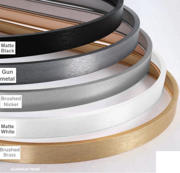 Beautifully made LED illuminating wall mirror with its gun metal silver frame colour. Its round shape is bordered by an aluminium frame, suitable for bathroom use. This LED bathroom mirror comes with a 5 year warranty - residential, and has passed all TUV Germany electrical certifications and SAA Australian electrical certifications.