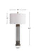 This Uttermost Anmer Industrial Table Lamp is a great choice for anyone who wants a clean look with a hint of industrial style. It features a clear glass base, accented with antiqued brass plated, textured iron details, for a subtle yet stylish feel. The white fabric drum shade complements this timeless lamp.