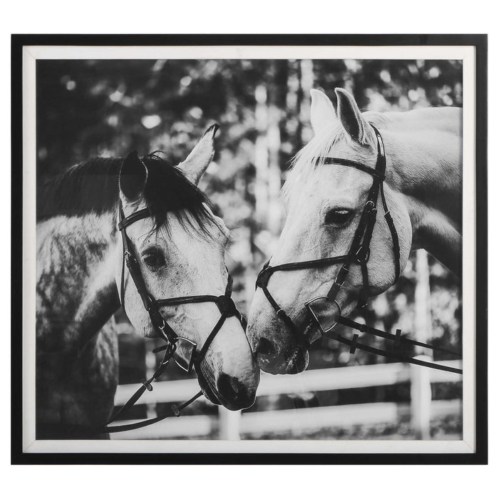 This stunning framed print has a black and white horse portrait under glass with a satin black frame and white linen liner. As a part of the equine story, Uttermost Apple of my Eye Framed Print speaks of emotions. It will add life to your empty wall.