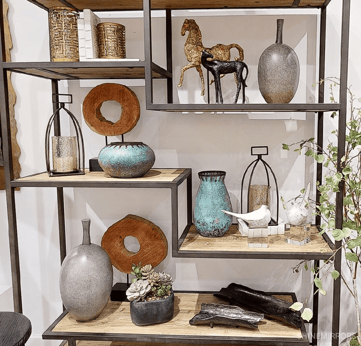 This set of two wooden sculptures made from natural mango wood logs is an attractive addition to any home or office. The matte black metal bases create a contemporary look and distinctive silhouette. Enjoy the warm feel of the natural wood accentuating your decor.