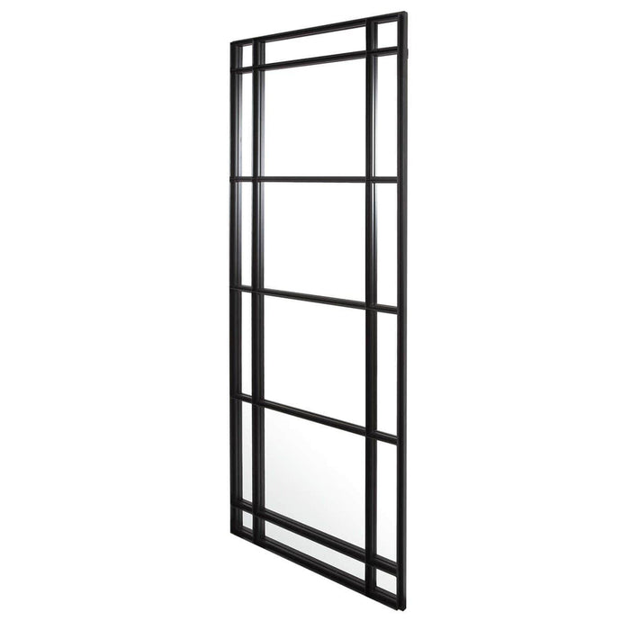 This full-length wall mirror features a heavy iron frame with deep channels to create a perfect hallway or living room mirror. Finished in satin black colour. This amazing mirror can be hung horizontal or vertical.