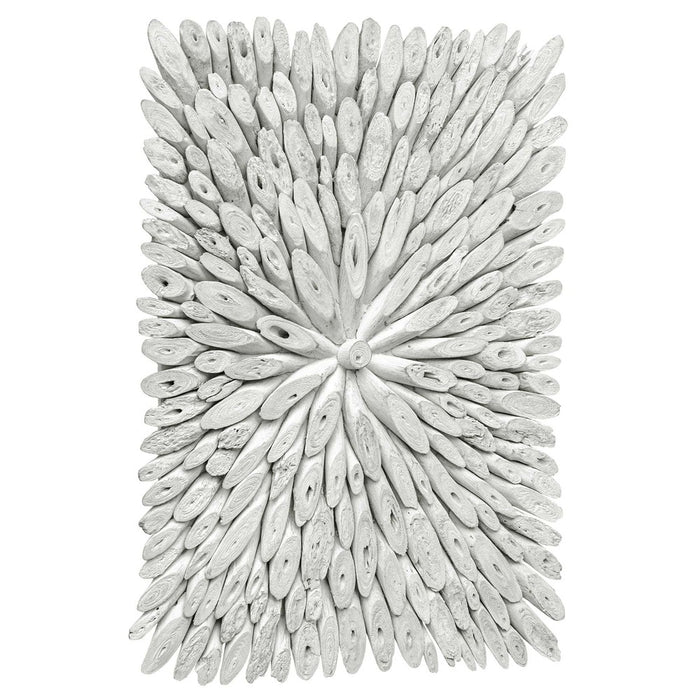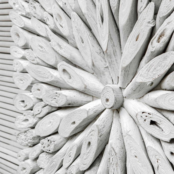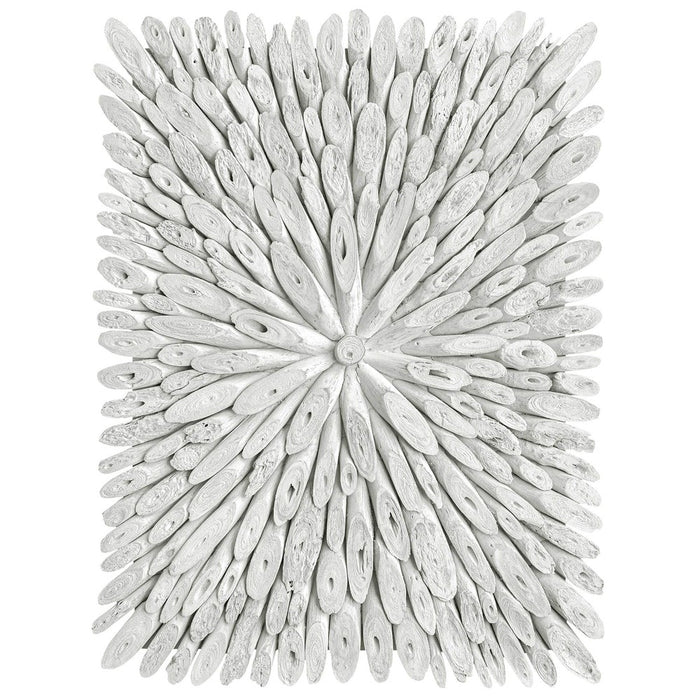 This Uttermost Bahama Wood Wall Decor makes a stunning, unique addition to any wall. Carefully crafted from individual pieces of driftwood in a white washed finish, it features a striking sunburst pattern. Showcase your personal style and add a natural touch to your home with this stunning wall panel.