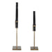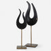 Crafted from man-made black stone and elevated on brushed brass metal stands, these sculptures are meticulously handcrafted with precision and attention to detail.