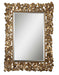 Creativity would flourish when this exotic beveled wall mirror is shown. With its frame consisting of metal strips being welded together forming a masterpiece everyone would admire. The antiqued gold leaf finish has an added light grey glaze, giving out a full glow.