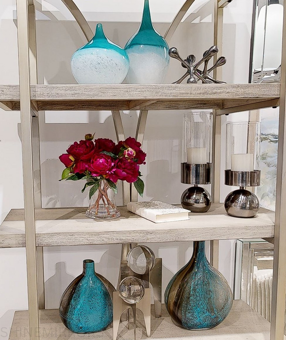 The Uttermost Carla Vases Set of 2 features two glass vases with a striking teal green finish that tapers down to white. Distinguished and sophisticated, this elegant set is the perfect accent to any interior space.