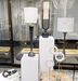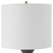 This Uttermost Fountain Black Stone Buffet Lamp is a subtly elegant piece that combines a classic trumpet shape with a man-made black stone construction and thick crystal foot. Brushed brass plated accents give it an extra touch of sophistication, while the white fabric shade lends a warm finishing touch.