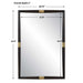 The Larkin Mirror boasts a curved frame made of dark oak wood, complemented by stylish plated antique brass cuffs, creating a sophisticated fusion of contemporary and rustic design elements. Can be mounted in a horizontal or vertical orientation.