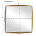 The On Point Square Mirror showcases a finely cut design of faceted profile, made from a sturdy wooden frame. Each side gently bows outward, enhancing the heavily antiqued gold leaf finish frame. The slender 1.9cm bevel follows the frame's lines, adding an elegant touch.