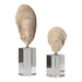 This Uttermost Oyster Shell Sculpture Set of 2 adds an exquisitely natural touch to any décor. These sculptures are cast from natural oyster shells, placed on crystal cube bases, and finished with aged ivory and chrome accents. Create a unique, coastal look in any room.