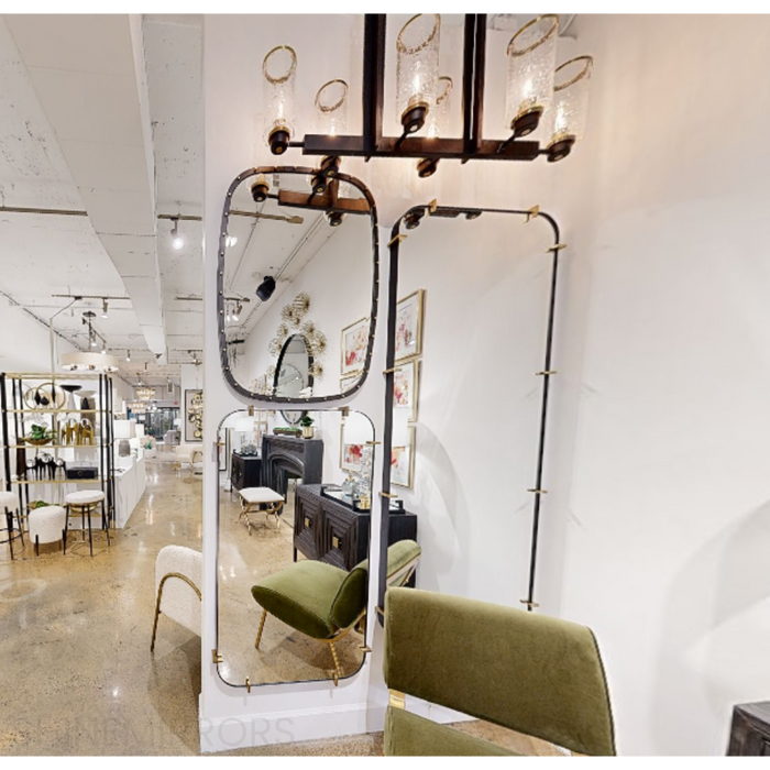 Introduce modern-industrial style to your space with the Uttermost Pali Dressing Mirror. Its striking black iron strap frame features lightly antiqued brushed gold accents, while the floating polished edge mirror adds a touch of elegance.