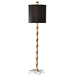 The Uttermost Quindici Bamboo Buffet Lamp is the perfect blend of classic and modern. The metal bamboo finish is enhanced with a lightly antiqued gold leaf, accented by a crystal foot for a premium look. Its round hardback drum shade is a crisp black linen fabric for a timeless aesthetic.