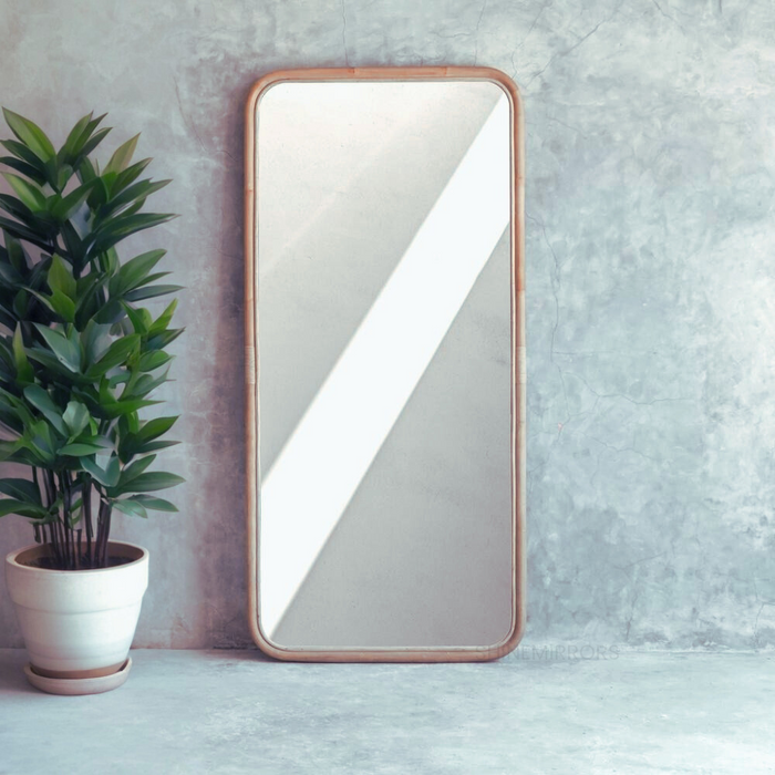 The Vella Rattan Full Length Floor Mirror incorporates premium reflective glass encased in authentic rattan framework with durable plywood backing. Its distinctive curved corner profile and earth-toned composition deliver optimal compatibility with maritime and bohemian interior design applications. The unit arrives with integrated suspension mechanisms, enabling immediate functional deployment within residential environments.