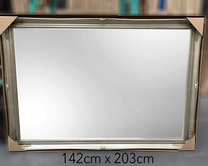 - 142cm x 203cm (whole mirror) with a 121cm x 181cm centre mirror