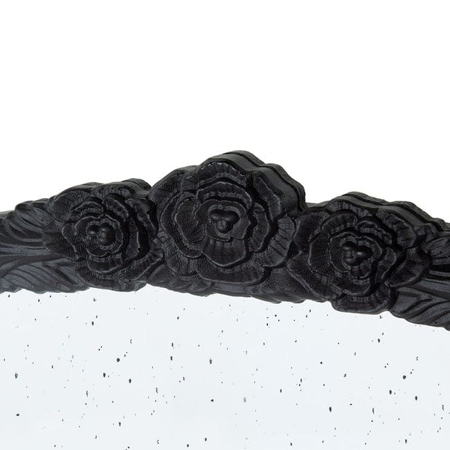 This arched mirror has a hand-carved rose embellishment on the top arch of the mirror that extends outwards to line the top of the mirror, giving it a vintage look. The frame has a neutral black colouration adding character to your living space. Centre mirror is made antiqued to complete the look. If you want to enhance your empty wall, a head-turner Victoria Rose Black Arched Wall Mirror can be a fine choice.